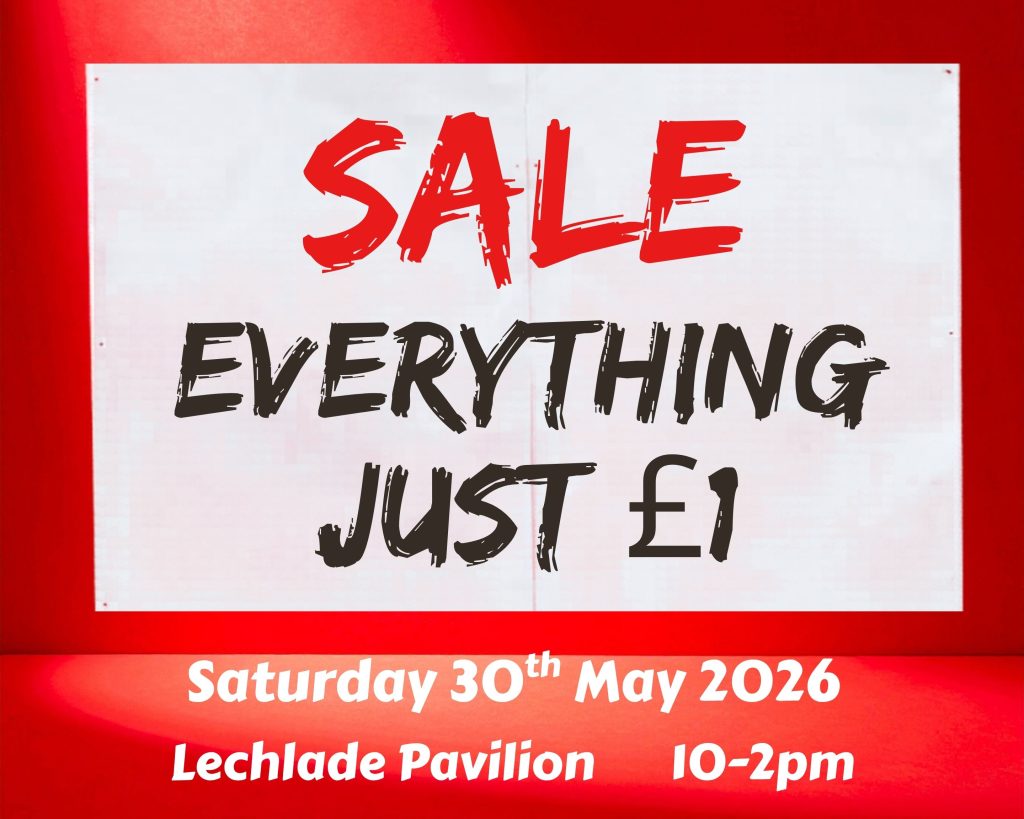 Saturday 30th May, 10-2. Lechlade Pavilion.